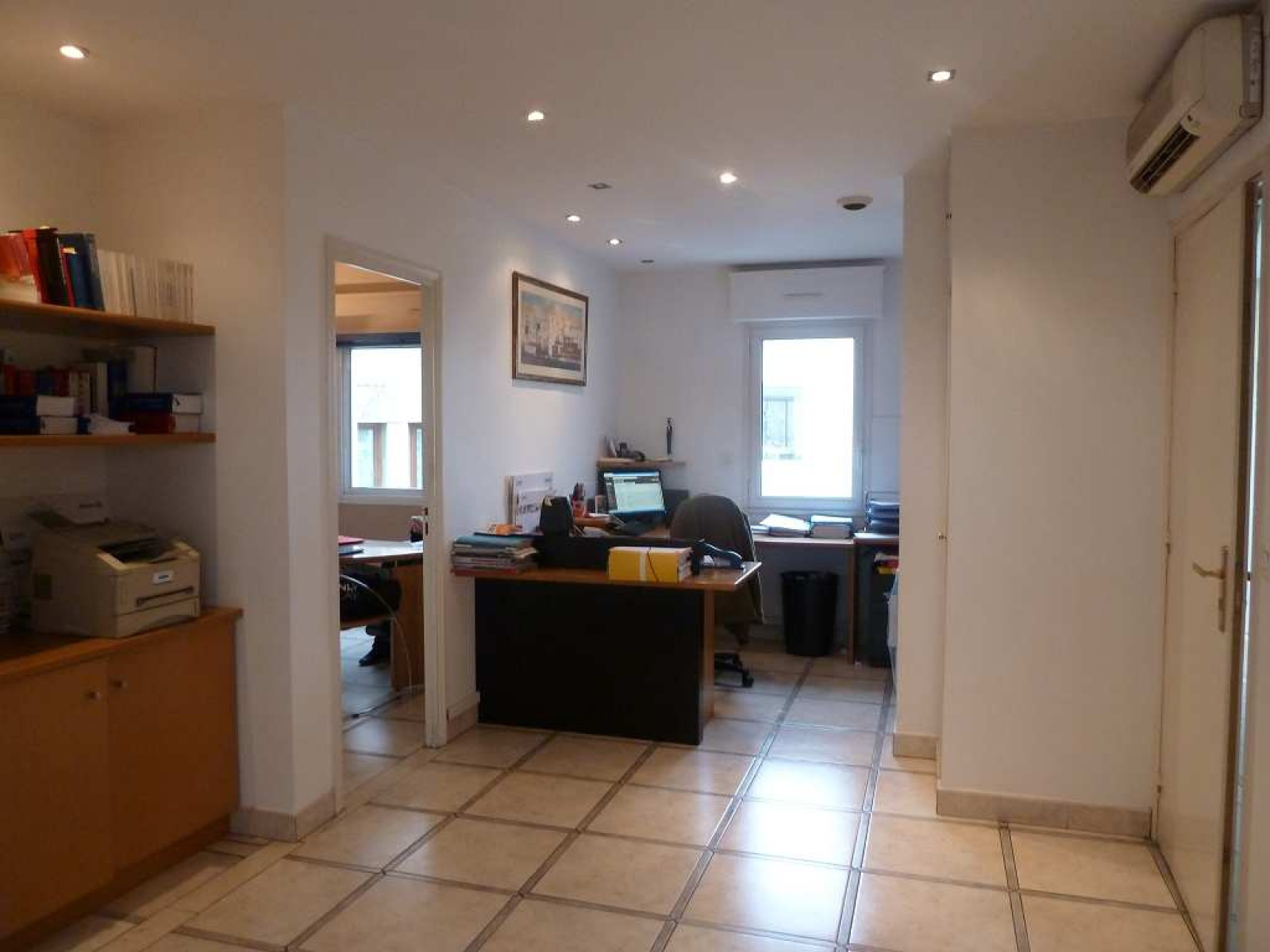 Bureaux 4ème étage d'un immeuble récent de standing en plein coeur des Arceaux. Idéal professions libérales. 130 m² avec accueil, 6 bureaux, W.-C.,douche, coin-cuisine. Locaux très ajourés avec verrière et un bureau en rotonde. L'ensemble est climatisé. Belle vue sur les Arceaux. Loyer : 2 500 ? Charges : 200 ? Honoraires : 2 500 ?