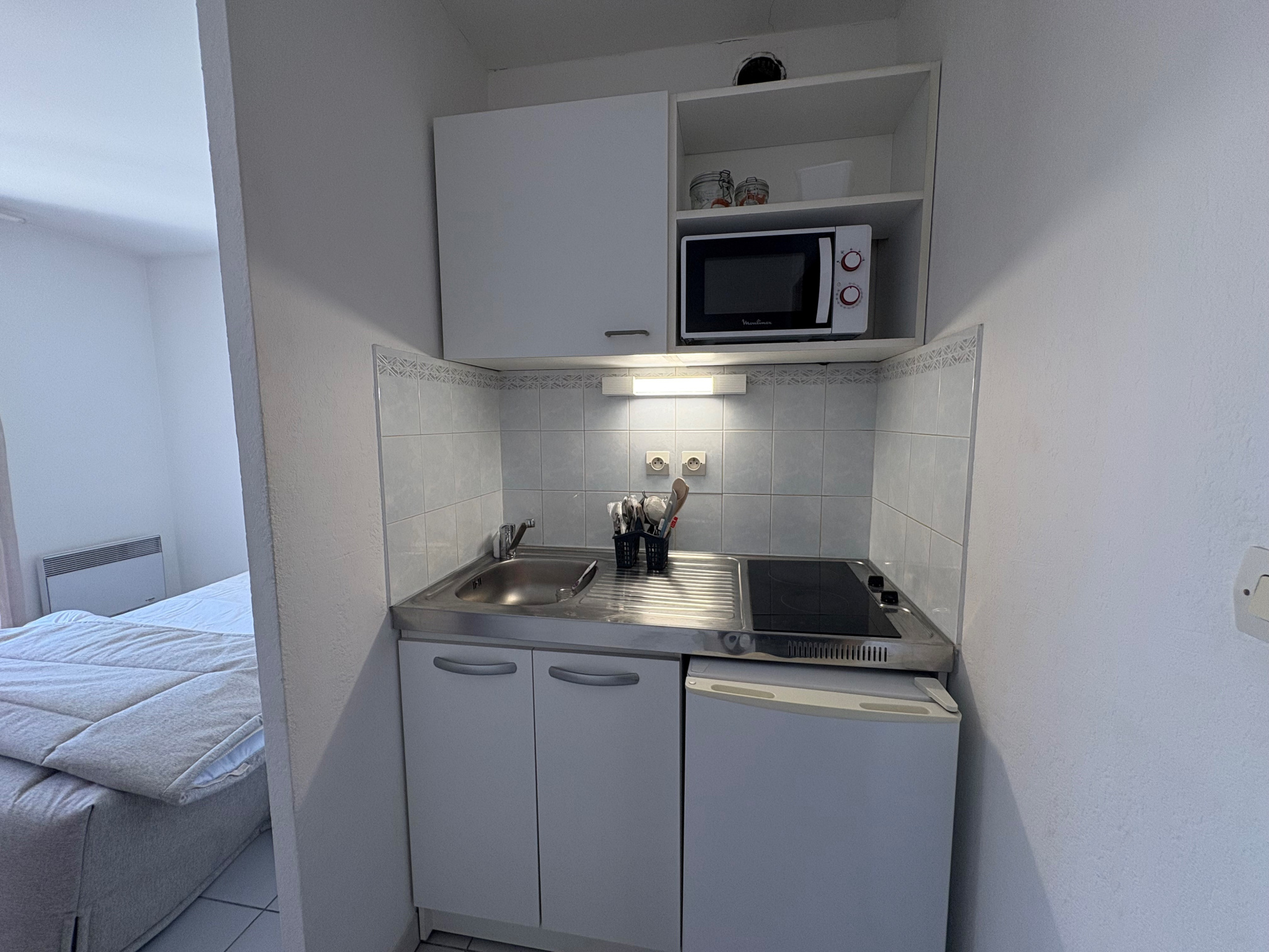 Montpellier Nord - Rue du Triolet, à proximité des facultés de sciences, lettres et pharmacie et de l'arrêt de tramway Universités des Sciences et des Lettres de la ligne n° 1, dans une résidence récente et sécurisée avec ascenseur, studio meublé de 20 m² au 1er étage composé d'un hall d'entrée, séjour avec kitchenette équipée (frigo table-top, plaque électrique, meuble de rangement), salle d'eau, W.-C. indépendant, terrasse