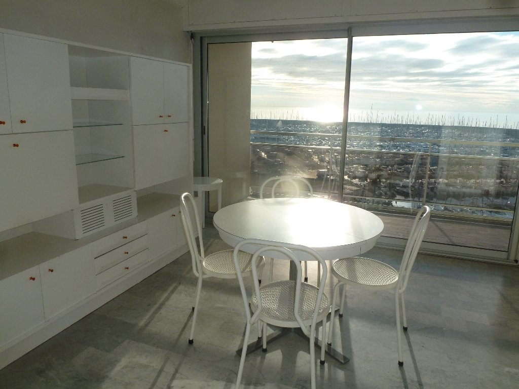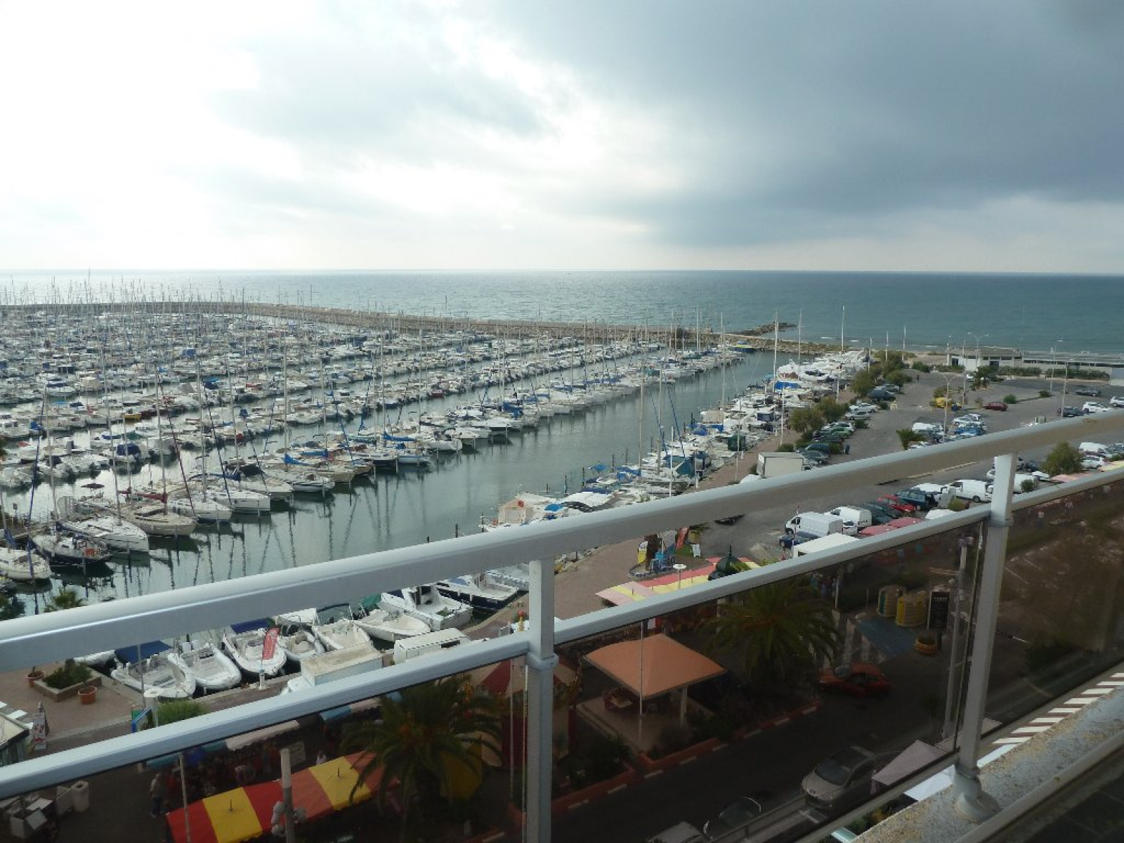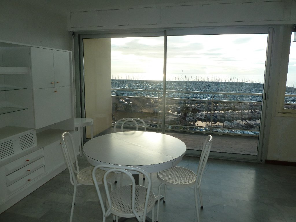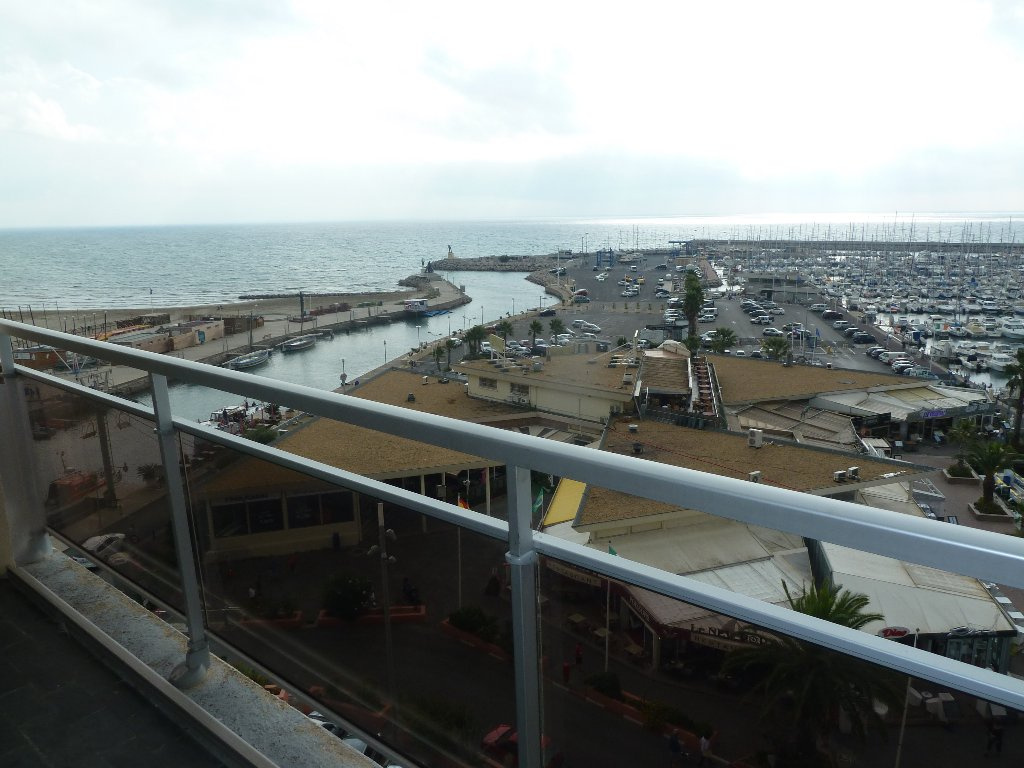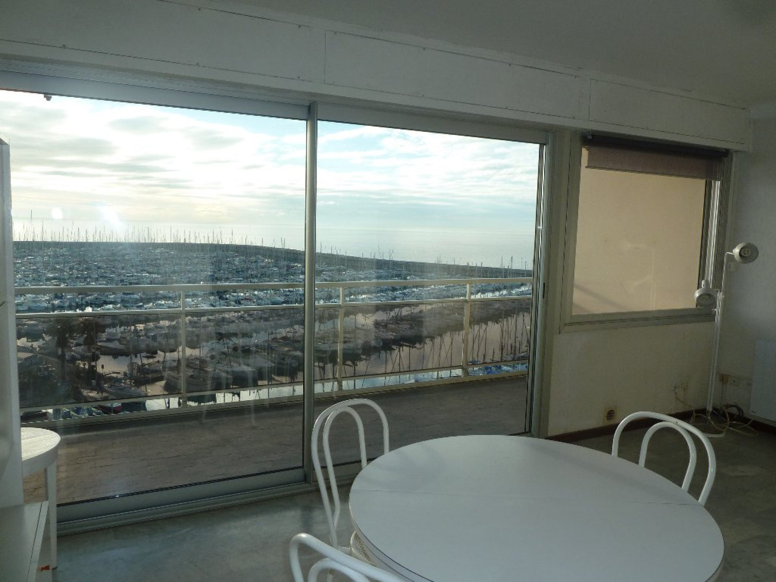 Palavas - Rive Droite, en 1ère ligne, sur le port avec vue exceptionnelle, T1 meublé de 33 m² + balcon de 8 m² donnant au 6ème et dernier étage avec ascenseur. Climatisation dans le séjour