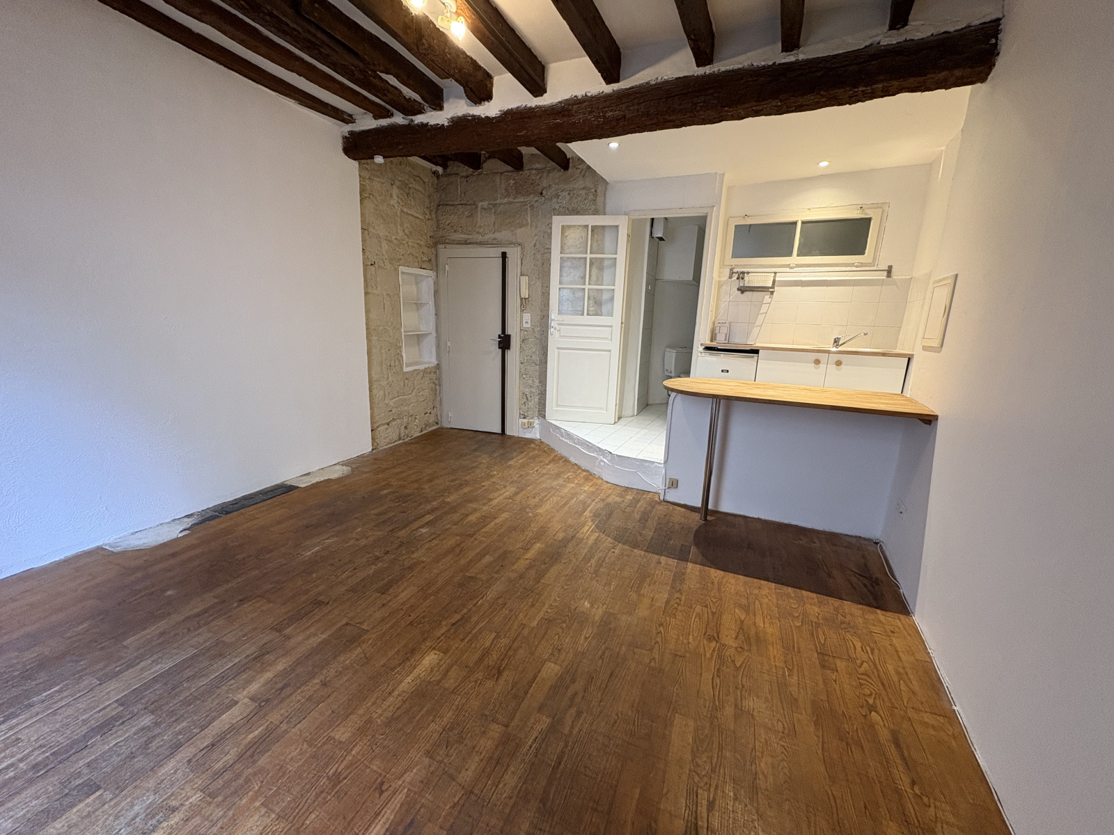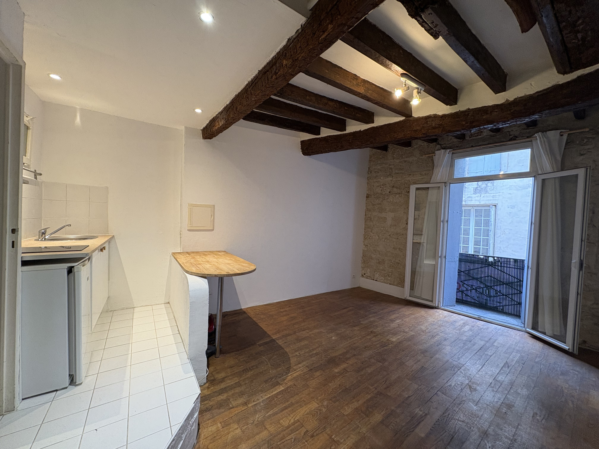 Situé dans l'écusson, au 1er étage d’un immeuble de caractère, découvrez ce charmant studio de 24 m², idéal pour un premier achat ou un investissement locatif.Il se compose d’un séjour lumineux avec coin-cuisine équipé, sublimé par de belles poutres apparentes qui apportent cachet et authenticité. Vous trouverez également une salle d’eau avec W.-C.Un agréable petit balcon montpelliérain complète ce bien, parfait pour profiter d’un extérieur en centre-ville.Proche des commerces, transports et commodités. À visiter sans tarder !